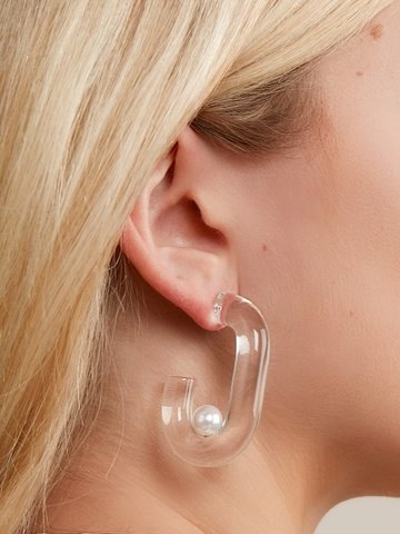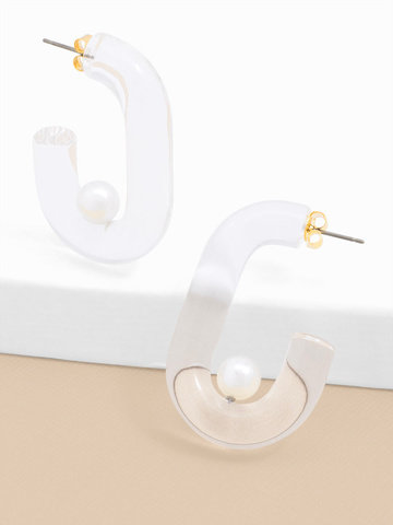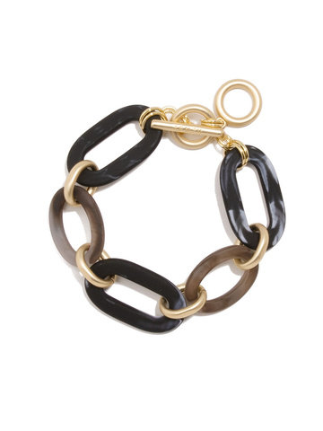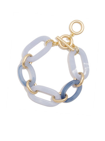 Bracelet designed with cloudy two-tone resin links and metal-plated oval links and completed with a toggle closure.
