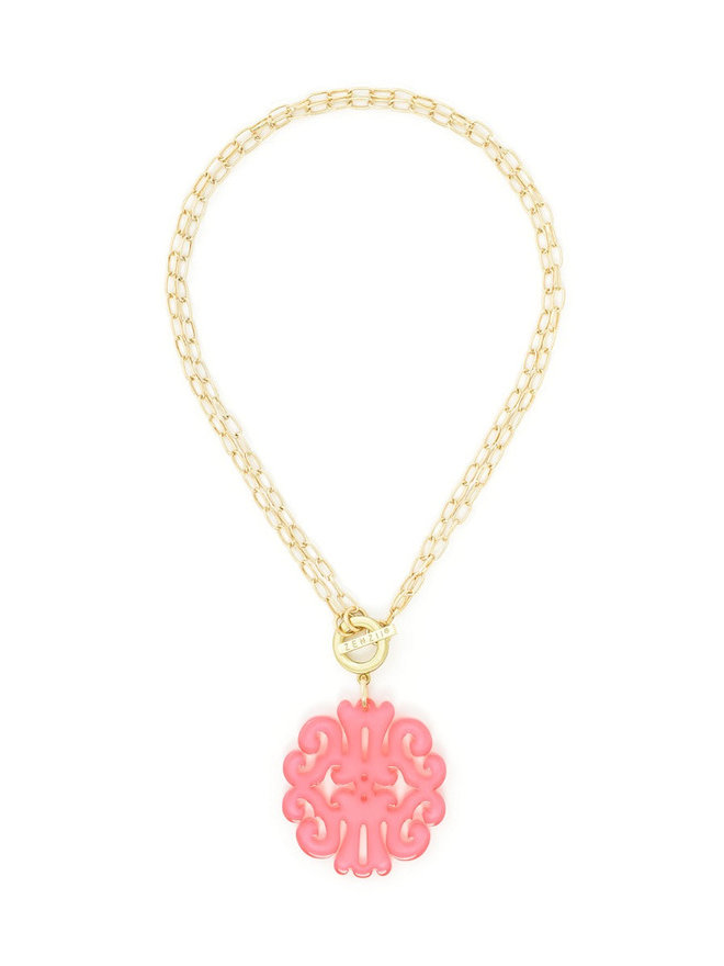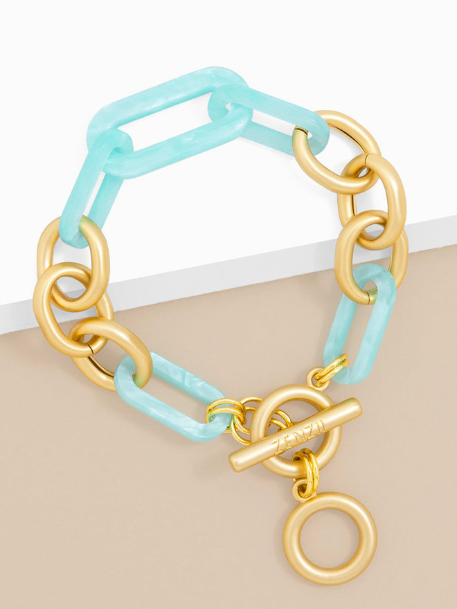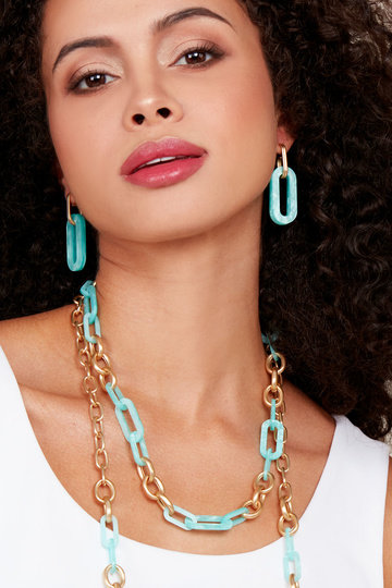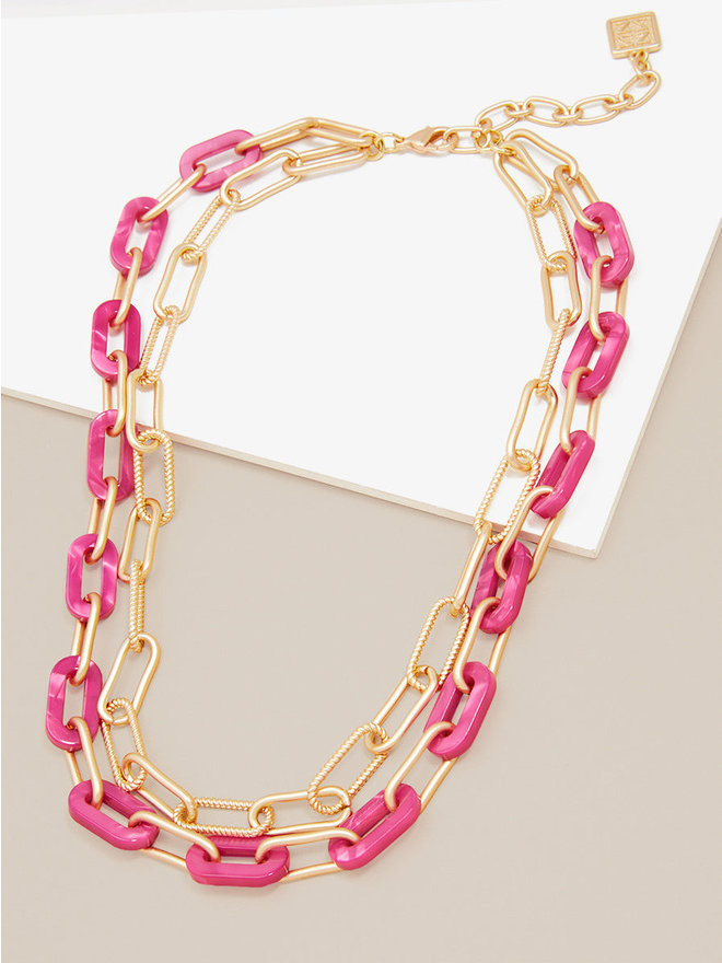 Circular Wave Resin Pendant Double Link Chain Necklace